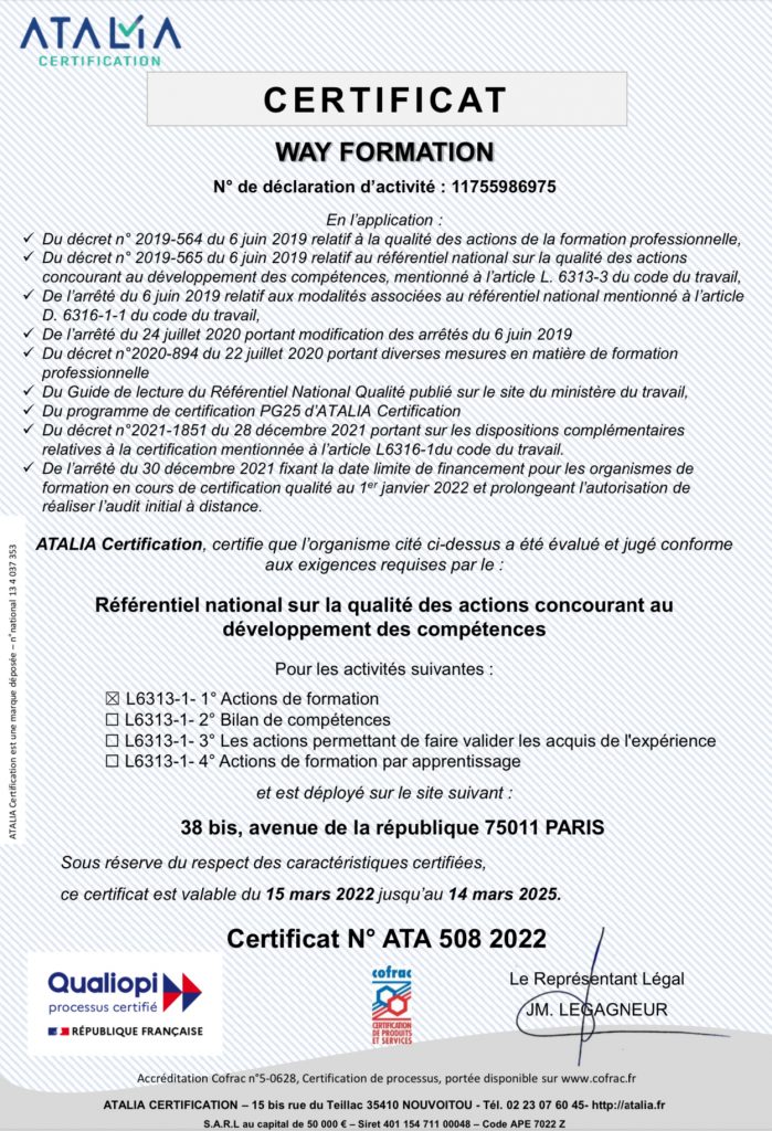 Chez Way Formation, nous sommes animés par l’envie de vous offrir des solutions de formation adaptées, pratiques et efficaces à des tarifs d’exemptions.